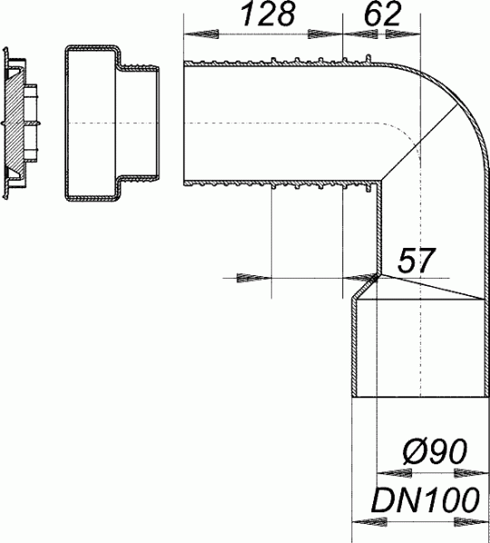do podłącznia WC DN 90, odpływ DN 90 lub DN 100.