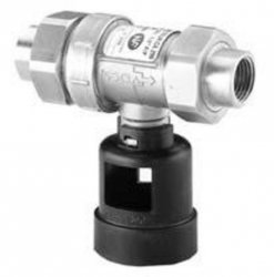 Typ CA296 - dn 1/2" - 3/4"; izolator przepływów zwrotnych gwintowany wew.; rodzina CA - podwójny zawór zwrotny z komorą pośrednią i zaworem upustowym; zawór nie posiada możliwości bieżącej kontroli poprawności działania; korpus: mosiądz; zawory zwrotne: mosiądz + POM (poliacetal); membrana: NBR (nitryl) i EPDM; Pnom 1,0 MPa, tmax=65oC.