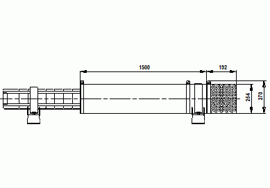 | Wymiary | fi D x dł. L [mm] - 200(220) x 1000 średnica płaszcza chłodzącego = łącznie z opaskami mocującymi = średnica maksymalna |