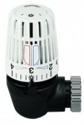 Głowica termostatyczna z wbudowanym czujnikiem cieczowym i ogranicznikami Sparclip, numery nastaw 1 - 5 - zabezpieczenie przed zamarzaniem+6 °C - zakres nastaw od 6 °C do 28 °C - kolor biały. Wersja kątowa o gwincie przyłąceniowym M 30 x 1.5 do zaworów termostatycznych i wkładek w grzejnikach zintegrowanych.
