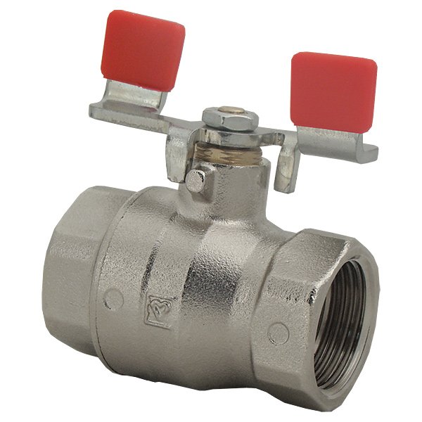 Wersja muffe x muffe. Kuta mosiężna koperta, niklowana, kula z pełnym przejściem. Uszczelki PTFE, uszczelnienie wrzeciona z PTFE. Gwint wewnętrzny zgodnie z ISO 228. Min Temperatura pracy: - 30 °C (woda +0,5 °C), maks. Temperatura pracy: 150 °C (woda do 110 °C, bez pary).