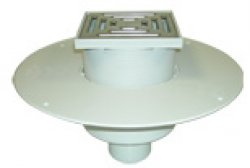 Wpust dachowy pionowy, z izolowanym korpusem posiadającym kołnierz z PVC do przyłączenia kołnierza izolacyjnego z PVC, z nadstawką 19 - 65 mm / 148 x 148 mm i kratką ściekową ze stali szlachetnej 137 x 137 mm.
