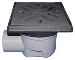 Studzienka z serii Perfekt DN110 z odejściem poziomym, ramą z żeliwa 260x260mm, kratką ściekową z żeliwa 226x226mm, klapą antyzapachową i osadnikiem piasku |