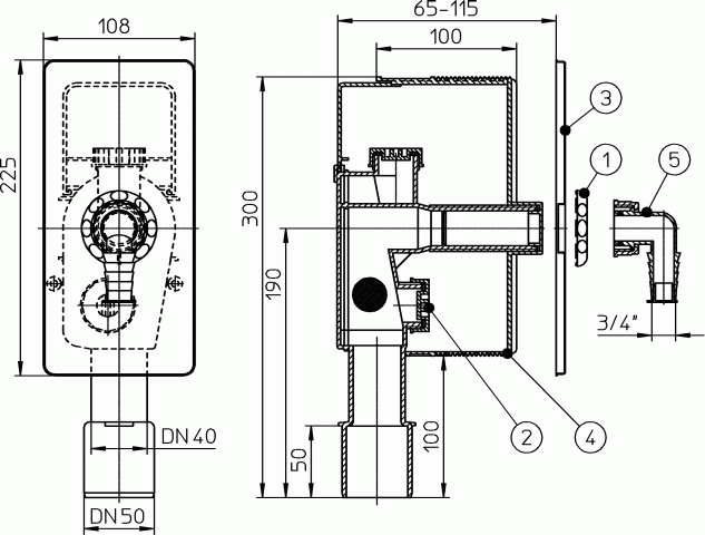 Syfon podtynkowy do pralki lub zmywarki DN40/50 z podłączeniem do napowietrzacza ,z kolankiem przyłaczeniowym do węża 3/4' HL19, i płytką ze stali szlachetnej 110x225mm