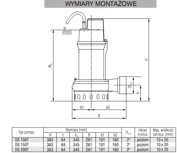 DS - pompy zatapialne z wirnikiem otwartym i króćcem poziomym