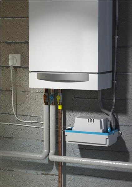 możliwość podłączenia: kotły kondensacyjne, klimatyzacja, chłodnictwo; 4,5m/50m; max. tem. pracy 80st.C, max wydajność 342l/h; moc urz. 60W; max pobór prądu 0,6A; z możliwością podłaczenia zewnetrznego alarmu |
