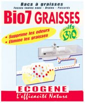 Biopreparat Bio 7 Tłuszcze (Bio 7 Graisses) służy do eksploatacji separatorów tłuszczu oraz instalacji kanalizacyjnych. Degraduje powstałe zatory tłuszczu oraz zapobiega ich powstawaniu.