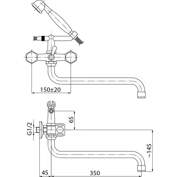 bateria wannowa/umywalkowa ścienna z akcesoriami krystal, bateria krystal, valvex zestawy prysznicowe, baterie, grzejniki, valvex, wannowe, umywalkowe, ścienne