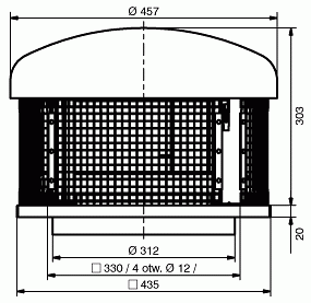 Wentylatory dachowe wyciągowe RF przeznaczone są do wentylacji pomieszczeń o niskim stopniu zanieczyszczenia powietrza. Stosowane są w instalacjach wyciągowych z mieszkań, supermarketów, hal przemysłowych, warsztatów, magazynów, toalet, garaży, parkingów, budynków gospodarczych.