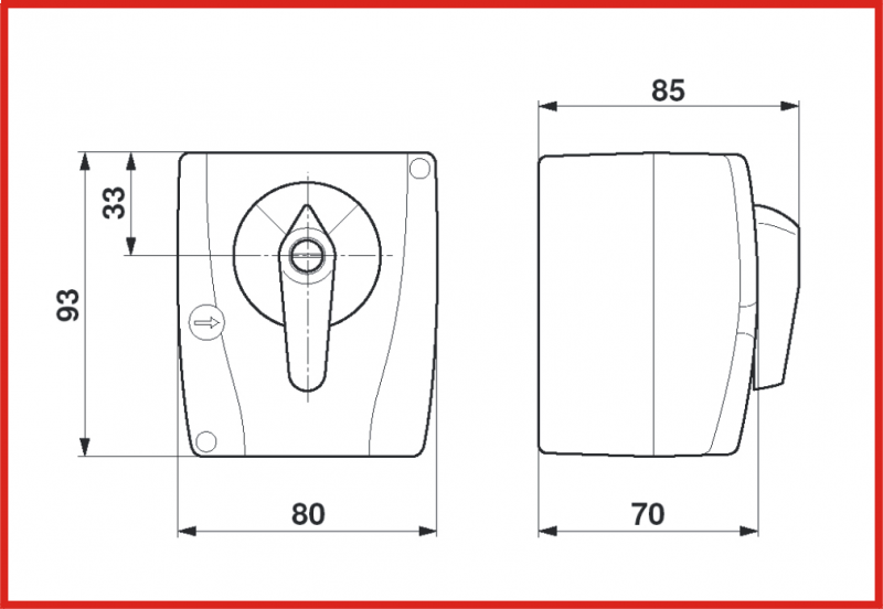 | Wskaźnik położenia: | naklejony na obudowie nad rączką |