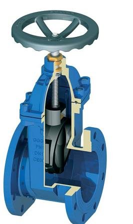 Gwint wewnętrz kadłuba ,klin ogumowany EPDM ,zamknięcie EPDM -żeliwo,epoksyd RAL 5002 ,z kółkiem ręcznym